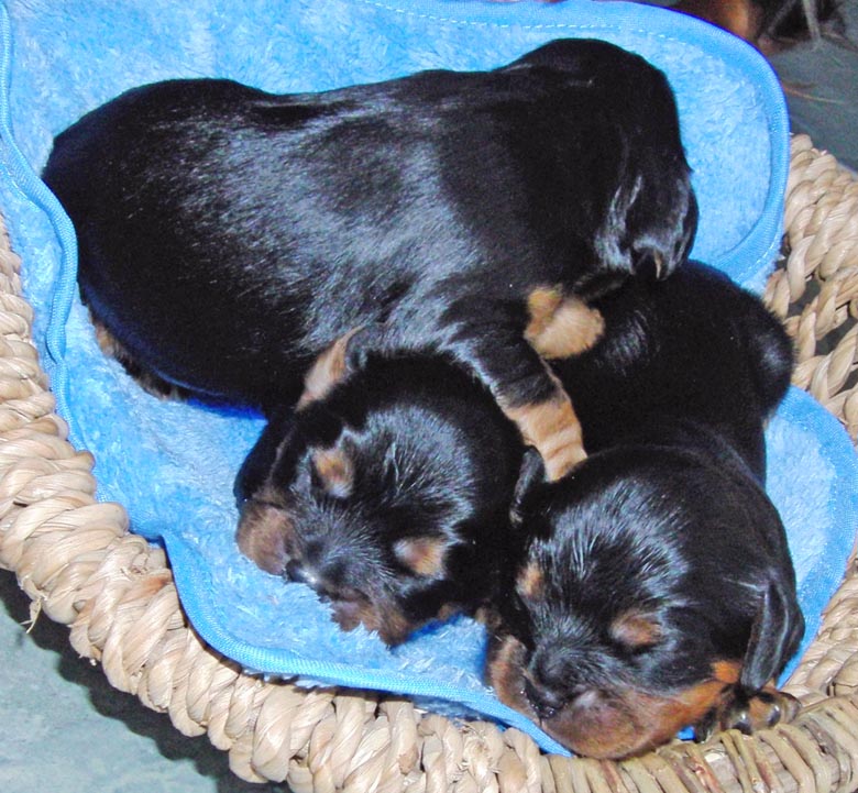 Alle wogen zwischen 200g und 250g sind lebhaft und fressgierig und krabbeln schon zielstrebig zu ihrer Mama. (Foto's zeigen Welpen mit 1 Tag!)