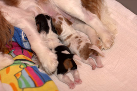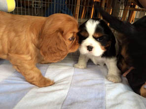 Blenheim Mädchen "Frieda" und Tricolour Rüde "Friedrich"